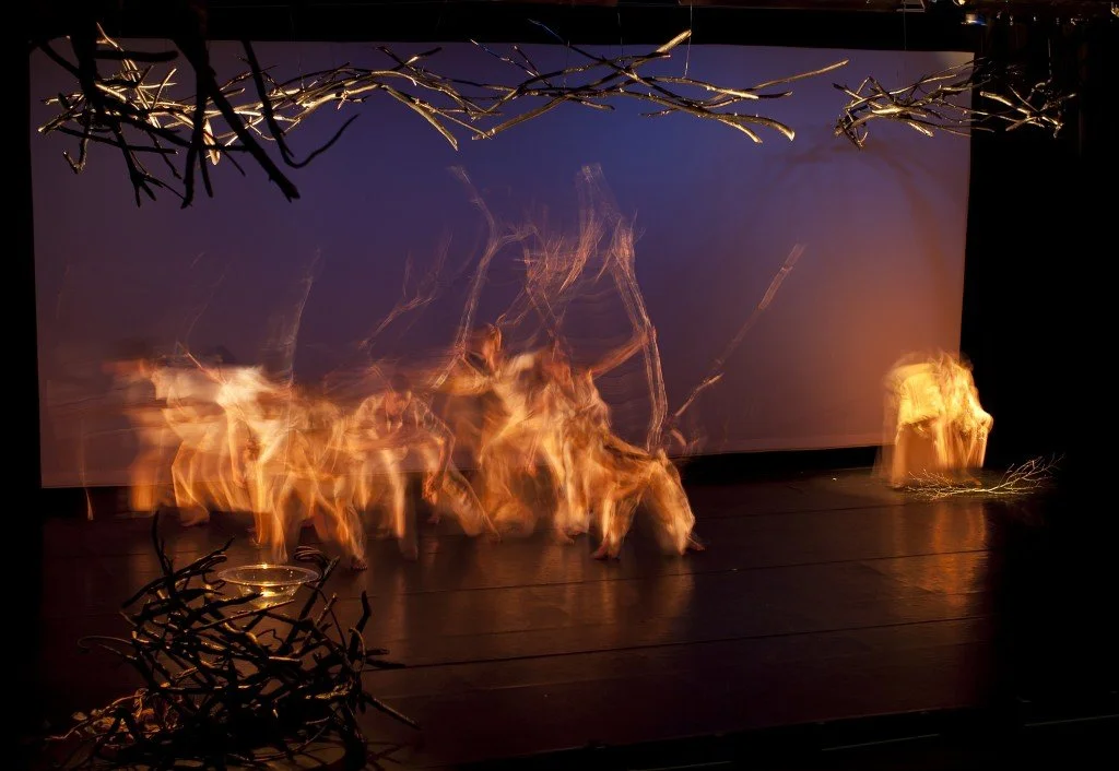 This project was in collaboration with Kun-Yang Lin Dancers for a performance at the Painted Bride Art Center in Philadelphia. This installation, which encircled both dancers and audience in the theater, was created in direct response to the choreography and content of the dance itself.