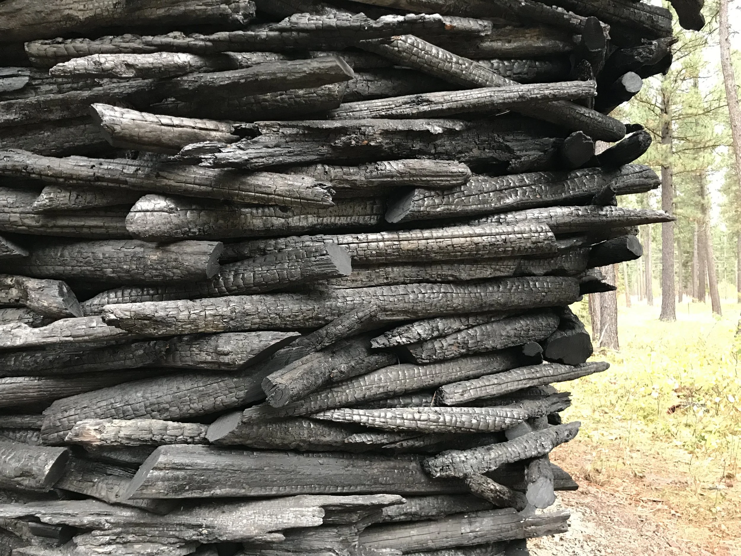 Charred wood from Montana wildfires and milled pine