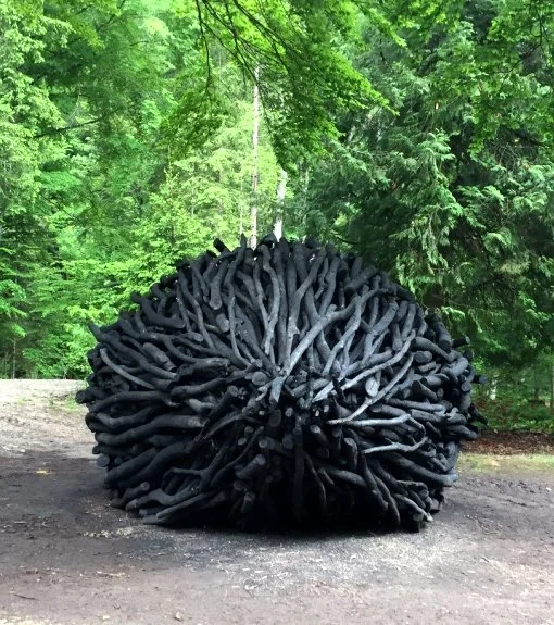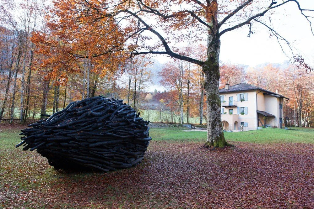 Created for Arte Sella Sculpture Park, northern Italy. il Seme (“the Seed”) rests beneath a spreading tree in a valley surrounded by the Dolomite mountains.